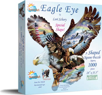 Experience an elevated puzzle journey with the superb "Eagle Eye" 1000 piece jigsaw puzzle, crafted for adults by celebrated artist Lori Schory. This unique, special shape puzzle features a magnificent eagle in a striking collage format, ensuring every piece seamlessly interlocks for a satisfying assembly, transforming it from the ordinary into an enthralling experience. With a completed size of 28" x 35.5", this USA-made treasure is an eye-catching addition to your collection, made using high-quality recycled cardboard and eco-friendly soy-based inks for vibrant patterns and colors that come alive. SunsOut, a woman-owned small business, guarantees durability with no frustrating breakages, promising pure, uninterrupted puzzling pleasure. Any issues with missing or damaged pieces are promptly resolved, thanks to SunsOut s stellar customer service, underscoring their commitment to customer satisfaction. The Eagle Eye puzzle isn t just a pastime - it s an artistic expression, a testament to American-made quality, and an embodiment of SunsOut s dedication to creativity, precision, and support for sustainability. Immerse yourself in this captivating world and let your senses soar as you connect each piece in this incredible jigsaw adventure.