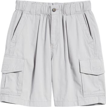 Relaxed cotton cargo shorts are constructed with an elasticized drawstring waist for easy belt-free comfort.