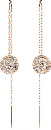 A domed charm inspired by meteorites and covered in pavé crystals swings at the front of these lengthy chain threader earrings.