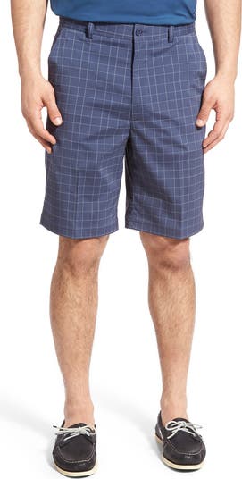 Made from moisture-wicking UV-blocking stretch fabric, these flat-front four-pocket golf shorts are patterned in plaid and ready for a day on the links.