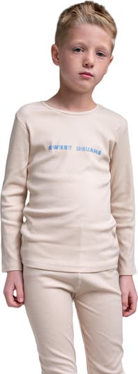 This set features a long-sleeved top with Sweet Dreams text and matching leggings. Perfect for a cozy night s sleep.