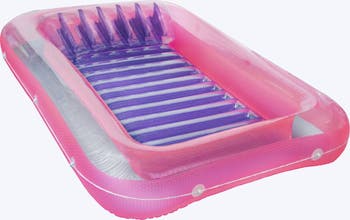 The suntan tub is an inflatable reflective 71 inch tub/lounge with integrated head rest. It can be used as a floating mattress in the pool, or add some water to use on the ground as a small kiddie pool! Multi use makes this a great value and versatile item. Suitable for ages 13 years and up. Weight capacity of 250 lbs. Use only under competent adult supervision.