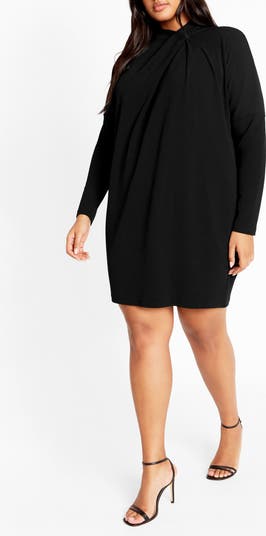 This long‑sleeve mini dress turns minimalism into art with its swirled neck and clean lines that speak pure sophistication.