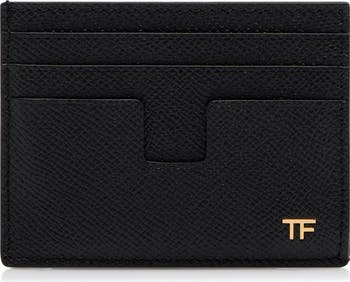 A multilayer T and a raised monogram are the textual references, while richly grained calfskin provides the textural ones on this sleek and handy card case.