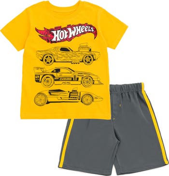 Rev up their wardrobe with this Hot Wheels T-shirt and mesh shorts set—built for speed and nonstop play! Featuring bold graphics of their favorite fast cars, the cotton jersey tee pairs perfectly with breathable mesh shorts designed for active days. With easy pull-on comfort and cool contrast details, this outfit is made for playground races, sunny adventures, and every pit stop in between. Perfect for kids who live life in the fast lane!