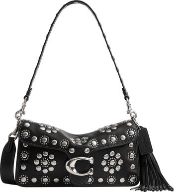 Polished rivets done in a floral-inspired motif bring Western charm to this structured leather bag featuring a divided interior and multiple pockets for easy organization. C logo hardware puts Coach s signature stamp on the piece.