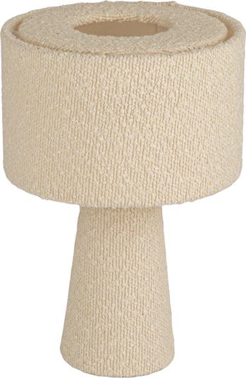 This Round Fabric and Metal Table Lamp, featuring an inline switch and a sleek white finish, is a stylish addition to any modern, Scandinavian, boho, or global interior. Made of durable polyester and PVC with a sturdy metal frame, this lamp combines durability with contemporary design. It requires one standard bulb with a maximum wattage of 20 watts, providing a soft, ambient light. This table lamp adds elegance and functionality to any space, measuring 7.75 inches in diameter and 11.75 inches in height. With its versatile design and neutral color palette, this lamp can easily complement various decor styles. The compact size makes it perfect for bedside tables, desks, or small accent tables in living rooms or bedrooms.