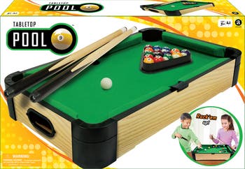 - COMPLETE TABLETOP SET: The set includes a tabletop pool table, a full set of pool balls, and two sticks, ensuring you have everything you need for hours of entertainment right out of the box.
