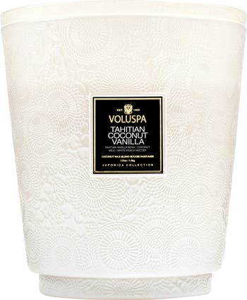 Notes: Tahitian vanilla bean, coconut milk, white peach nectar, jasmine, orange flower blossoms, pistachio creme