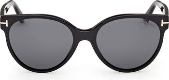 Signature T-inlays accent the hinges and temples of Italian-made sunglasses featuring a round silhouette and glare-reducing polarized lenses.