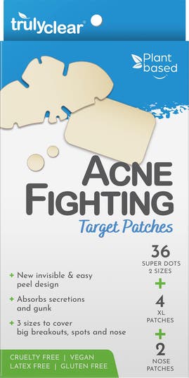 TRULY CLEAR: HYDROCOLLOID TARGET ACNE PATCHES - 42 PACK - 3 sizes, Hydrocolloid Acne Spot Stickers for Zits and Blemishes, Vegan, Cruelty-Free Acne Solution, Overnight Results. No need to pop – just apply and let them work their magic while you sleep. Discover the path to radiant, blemish-free skin with Truly Clear. This drug-free solution caters to all skin types, offering a safe and highly effective method for rapid blemish relief. These patches, meticulously crafted, go beyond the surface, absorbing secretions and impurities. This targeted absorption promotes not just clear skin, but a healthier complexion overall. Whether it s a big breakout, a pesky spot, or a stubborn nose blemish, we ve got you covered. Experience the precision of targeted relief, paving the way for skin that s not only clearer but also remarkably healthier. Made of medical-grade hydrocolloid. Vegan formula. Seals pimples and blocks external oil and bacteria. Draws out pus and absorbs impurities from deep within pores. Individually sealed for sterility and maximum adhesion. Customizable coverage for instant spot treatment. Flattens spots without irritation. Zap zits overnight! Plant-based pimple patches that work fast, sucking out pus while you sleep for clearer skin by morning. Our hope is that everyone can feel confident and accepted in their own skin, without acne, blemishes, and imperfections. INCLUDES; 36 super Dots in 2 sizes, 4 XL Patches, 2 Nose Patches. INGREDIENTS: Hydrocolloid - A medical-grade gel that gently absorbs gunk and soothes inflammation. TRULY CLEAR - a trusted blemish brand.