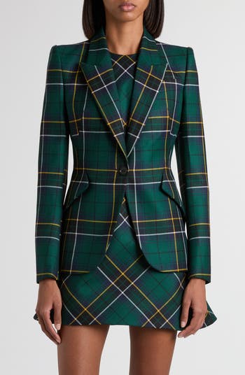 Séan McGirr pays homage to his Irish heritage as well as the eclectic culture of Soho with the vibrant tartan covering this wool blazer tailored in McQueen s signature strong-shoulder silhouette.