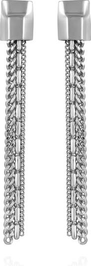 Make a statement with these striking Vince Camuto tassel drop earrings. Featuring a sleek design with a delicate chain tassel that sways with every movement, these earrings add a touch of modern sophistication to any look. They are secured with a classic fish hook closure for easy and comfortable wear.