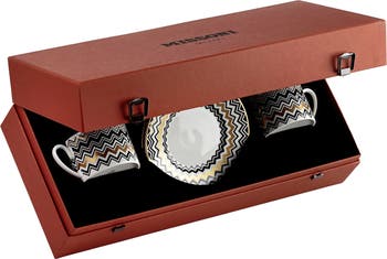 The Missoni Zig Zag collection is a homage to the iconic zigzag stitches that made Missoni s designs instantly recognizable and elevated the brand to global luxury status in the 1960s. Multicolored or self-patterned white, the Zig Zag line is a best-selling line. The range includes dinnerware, flatware, glassware, trays, and scented candles.