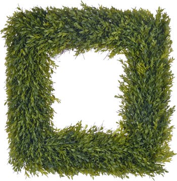 A modern take on the traditional wreath, our square faux boxwood wreath is ready to hung on your door to welcome your guests in all year round!