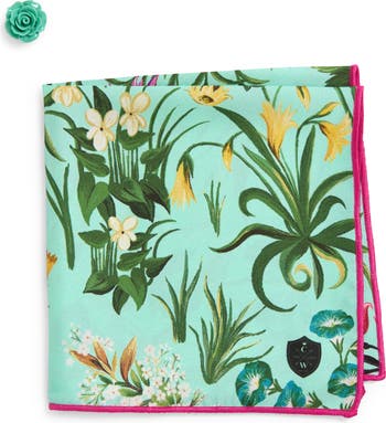 Bright and colorful, this floral-print pocket square brings an unexpected pop and a polished finish to any formal or semiformal outfit. It pairs well with smooth, solid fabrics, but there s always room for mixing patterns and textures to define your personal look.