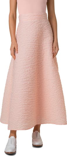 A featured style in Albert Kriemler s spring 25 collection—aptly titled Flou and Pragmatism —this ankle-grazing A-line skirt exemplifies the theme in a pastel-hued, bubble-textured techno-organza construction that simultaneously holds its shapes and appears lighter than air.