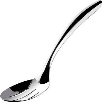 The Cuisipro Tempo Slotted Spoon is a sleek addition to your kitchen utensil collection. Crafted from high-quality stainless steel, this slotted spoon is designed for durability, reliability, and versatility. With its generous length of 13.5 inches, it s perfect for stirring, serving, and straining a variety of dishes, from soups and stews to pasta and vegetables. The slotted design allows for easy drainage of liquids, while the ergonomic handle ensures a comfortable grip for precise and controlled serving.
