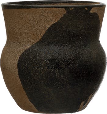 - This terracotta planter features a beautiful black and brown pattern, and displays any florals or plants effortlessly
