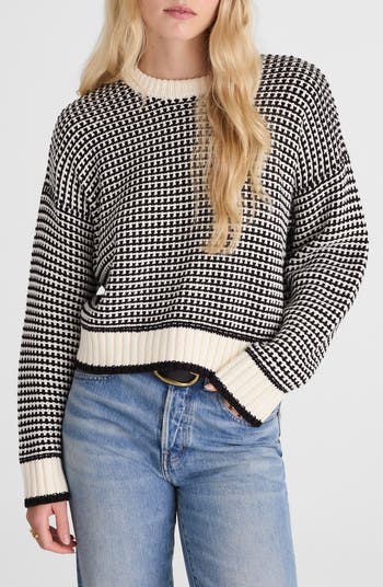This sweater is all about texture thanks to its two-tone stitching. Made from all cotton, it s designed with dropped shoulders for an effortless relaxed fit.