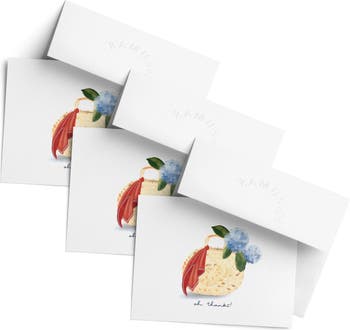 This 3-pack of Thank You greeting cards is elegantly illustrated by artist Ingrid Ramus, founder and owner of the Ramus Co brand. Front artwork features "oh thanks" flowers in a picnic basket. The cards are blank inside. All greeting cards are made in the USA on heavyweight uncoated and locally-manufactured card stock. Each card is individually wrapped in TUV Austria certified-compostable PLA sleeves. Each card is accompanied by a hand-embossed envelope made with heavyweight 95lb paper and a peel-and-stick flap - no licking envelopes here! All Ramus Co. greeting cards are printed on FSC and SFI certified paper sourced from a regional mill that harnesses 66% of its energy from on-site sustainable sources, such as emission-free hydroelectricity and biomass co-generation from wood waste. Additionally, our greeting cards are thoughtfully packaged in bags made from certified compostable PLA material. Husband-and-wife team Calvin and Ingrid Ramus founded Ramus Company in 2019, in New England, USA. Ingrid, the creative designer behind the brand, originates from Mexico, where she cultivated her skills in fashion and textile design. Drawing from her unique and inquisitive perspective on preppy style, Ingrid prolifically designs whimsical yet classic stationery and lifestyle items.