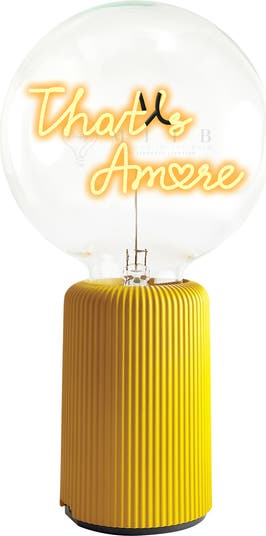 A message of love is illuminated in the oversized bulb of this portable, rechargeable table lamp that adds unforgettable style and personality to your space.