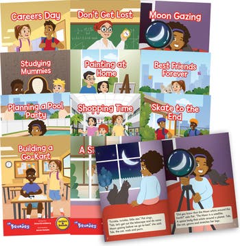 THE BEANIES: DIVERSITY DECODABLES - PHASE 6 - Written especially for older, struggling readers, we present our newest series of decodable books - The Beanies. The Beanies are Hi-Lo - age appropriate, high interest stories with an exciting array of adventures, centered around a cast of diverse, relatable, and teenage characters that reflect the modern world that we live in. Phase 6 (Spelling) set has been written specifically for the progression of Letters Sounds. Phase 6 (Spelling) readers have been written with a rich vocabulary including embedded words that contain suffixes. Phase 6 readers will follow students week-by-week through the program providing them text-based context to consolidate their emerging reading skills. Every story has been written with a strictly controlled text, so that students are only exposed to those letter sounds that they have previously learnt. Furthermore, tricky words are only included after they have been introduced. Build confidence in older, struggling readers as they master the phonics code. COMPATIBLE WITH OTHER READING SCHEMES: With book-banded reading levels provided, The Beanies Phase 3 set is designed to be easily integrated into other popular reading programs, supporting diverse learners with various teaching methods. Set contains 12 books at Phase 6 level. OVERVIEW: Consolidates earlier learnt phonics skills. Inside front shows exact progression. Point and say page for tricky words. Bright, colorful illustrations. 12 Fiction readers. Engage all learners.