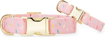 A whimsical sprinkles pattern with glinting hardware defines a luxe cotton collar that adjusts to perfectly fit your pup.