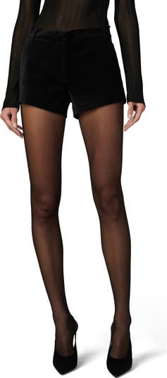 Buttery velvet adds a night-out vibe to these sweet and flirty shorts cut to a mini length.