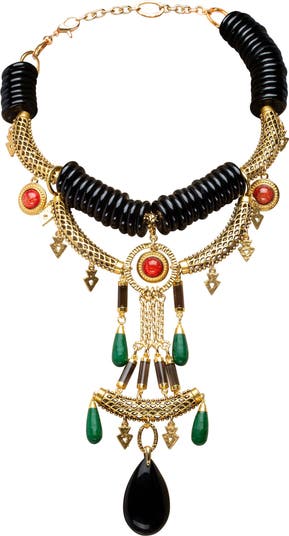 Indulge in the luxurious charm of a statement piece that embodies both artistry and elegance. Crafted with meticulous attention to detail, this masterpiece enhances any ensemble with its striking design and sophisticated flair. Adorned with luxurious glass beads and accentuated by vibrant details, it captures the light beautifully, adding a captivating touch to both evening wear and casual styles. The centerpiece, a dramatic glass drop pendant, serves as a bold focal point, ensuring this necklace will elevate your accessory game to new heights. Designed for the discerning individual, this exquisite necklace incorporates natural elements, including labradorite and agate drops, introducing unique textures and shimmering accents. Perfectly versatile, it brings a refined aura to any occasion, making it an essential addition to the collection of anyone who appreciates the finer things in life.