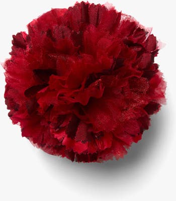 Known as the flower of love, the carnation has been revered for centuries as a symbol of commitment and devotion. This exquisite bloom is lovingly handmade with layers of scarlet red cross-dyed silk iridescent chiffon, silk taffeta and silk organza. The carnation is the birth flower for the month of January, the state flower of Ohio, and the national flower of Spain, Monaco and Slovenia.