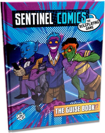 Sentinel Comics The Role Playing Game: The Guise Book!?! - The fun-loving and fun-having hero Guise book is here, and he s brought friends! According to this bizarre bunch, Sentinel Comics The Roleplaying Game needs more humor, and this book is just the place to make it happen. This supplemental book contains advice for bringing humor into your SCRPG scenes; two completely ridiculous) adventures; more heroes, villains, minions and lieutenants than you can shake a stick at (depending on your stick-shaking abilities)! A tour of Guise s apartment and a semi-functional appendix. Guise may be a silly hero, but he s serious about saving the day. Join him and his fellow wacky heroes as they form a Neighborhood Watch and defeat the ne er-do-wells that threaten your home, your city and your produce!