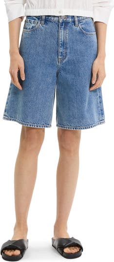 Keep it kicked back in roomy denim shorts cut with a comfy high waist and turned to the perfect fade.