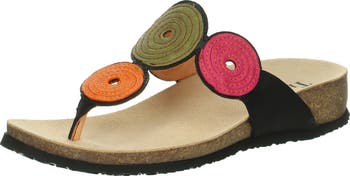 Ornate leather circles shape this summery flip-flop handcrafted in Europe with a contoured cork footbed for indelible comfort.