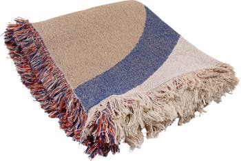 - A vibrant throw featuring an abstract design with fringe in multicolor