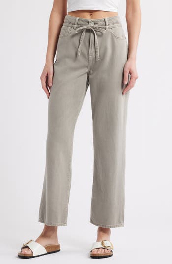A tie at the high waist adds weekend-ready style to wide-leg jeans made from soft, nicely draped nonstretch denim.