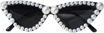 Sleek and edgy black sunnies hand studded with synthetic pearls for an ultra sexy vibe!