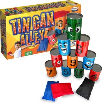THIN AIR GAMES: TIN CAN ALLEY - Bring joy and excitement to your family gatherings, birthday parties, and holidays with the Thin Air Brands Tin Can Alley - Bean Bag Toss Game for Kids! This carnival can toss game is designed to entertain children, providing hours of fun and laughter. The set includes 10 tin cans featuring funny and cute emoji faces on one side and numbers for scoring on the opposite side, along with 3 durable beanbags for endless tossing fun. Bean bags are light weight for added safety for small children. Setting up the game is simple and quick. Stack the cans into a pyramid or line them up in a row, then take turns tossing the beanbags to knock them down. Whoever knocks down the most cans wins! You can easily adjust the difficulty by changing the number of cans or the distance from which players throw the beanbags, making it perfect for kids of all skill levels. The lightweight cans produce a satisfying crash and clatter when hit, adding to the excitement and enjoyment. This carnival bean bag toss game is not only fun but also helps enhance hand-eye coordination, motor skills, and social interaction. It s a fantastic way to bring families and friends together, promoting bonding and creating lasting memories. Whether you’re planning a carnival-themed party, a birthday celebration, or just a fun day in the yard, this game set is a must-have. It’s suitable for indoor and outdoor use, making it versatile for any event. Thin Air Brands, based in Colorado, USA, is a trusted name in quality children s toys, ensuring you receive a product that is safe, durable, and designed for maximum enjoyment.