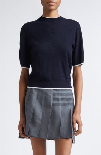 Tipped Textured Stitch Short Sleeve Virgin Wool Top