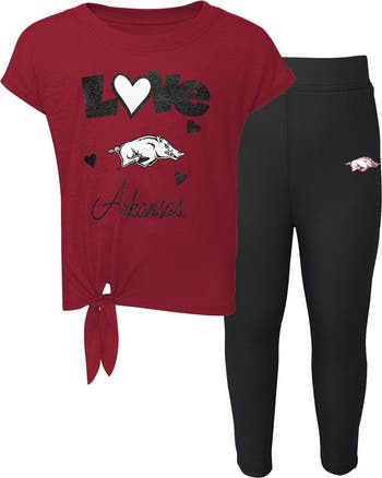 Let your kiddo show off their growing Arkansas Razorbacks fandom with this Forever Love T-shirt and leggings set. The glimmering Arkansas Razorbacks graphics on the chest let everyone know who they re cheering for come game day. Plus, the soft material helps keep them comfortable all day long.