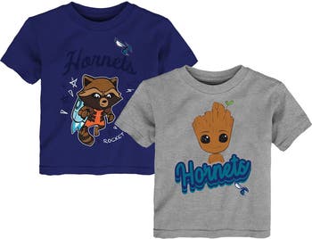 Let the littlest member of your family show their Charlotte Hornets fandom with this Guardians of the Galaxy T-Shirt Two-Set. Both shirts in this set are constructed with soft, breathable fabric, ensuring your little one stays comfortable while repping their favorite team and Marvel characters. This fun set is a slam dunk for any young fan who loves the Charlotte Hornets and the Guardians of the Galaxy!