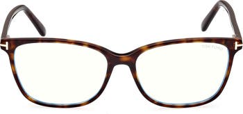 T-shaped motifs accent the rectangular silhouette of Italian-made glasses fitted with lenses that help filter out blue light from devices and computer screens.