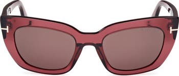Signature T-inlays brand the temples of Italian-made sunglasses shaped in a slender cat-eye silhouette.