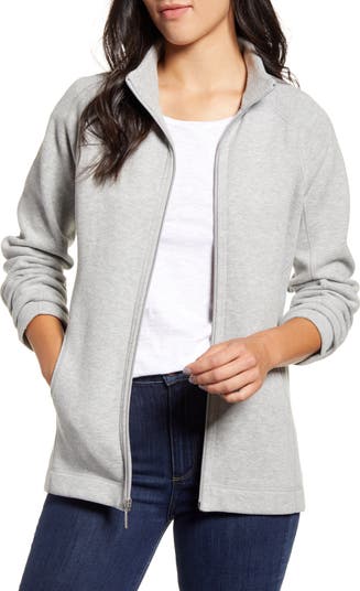 When a chill hits the air, keep cute and carry on in this soft, stretch-knit cotton jacket featuring a cozy collar and a pair of handy pockets.