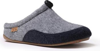 A felted wool upper adds cozy texture to an adjustable scuff slipper featuring a soft, fuzzy lining and flexible, lightweight sole.