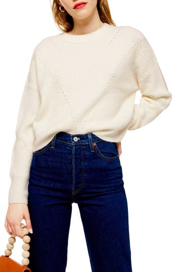 Multidirectional ribbing adds subtle texture to a cropped pullover that s a casual fave.
