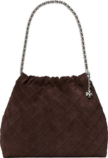 Signature logo hardware and diamond-quilted suede distinguish a spacious hobo bag perfect for storing your daily essentials while on the go.