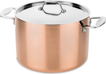 - Technology: Tri-ply, 18/10 stainless steel, aluminum core, copper, mirror polished surfaces outside and inside, handles with strongly fixed 18/10 stainless steel rivets, graduated measurement inside.