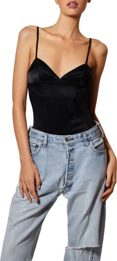 The Tous Les Jours bodysuit is crafted in sensuous stretch silk with structured front boning and a sculpted bust that defines the silhouette. Designed with adjustable straps, an invisible side zipper, and a clasp at the back that frames a subtle open-back detail. A mesh panel at the base of the spine creates a peek-through moment when styled with denim or tailored separates.