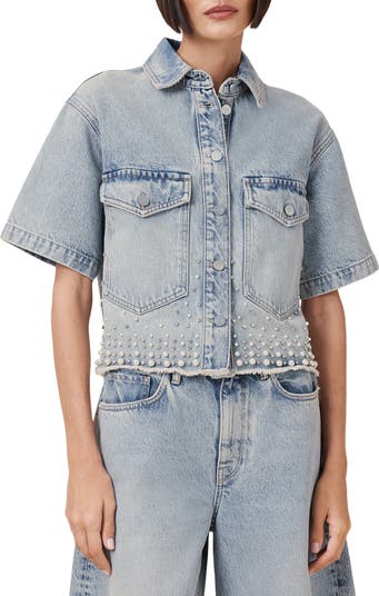 Tove Embellished Short Sleeve Oversize Denim Button-Up Shirt